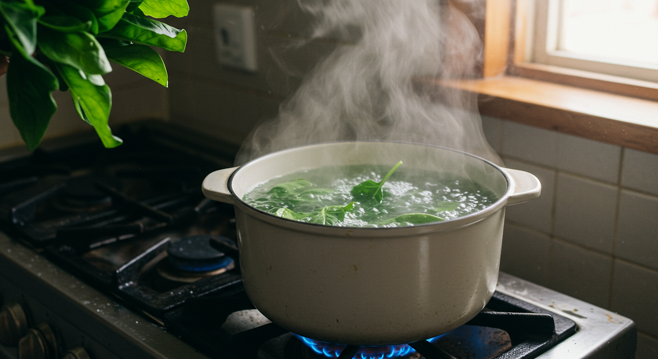 줄기와 잎 따로 데치기: 쫄깃함을 위한 시간 차이