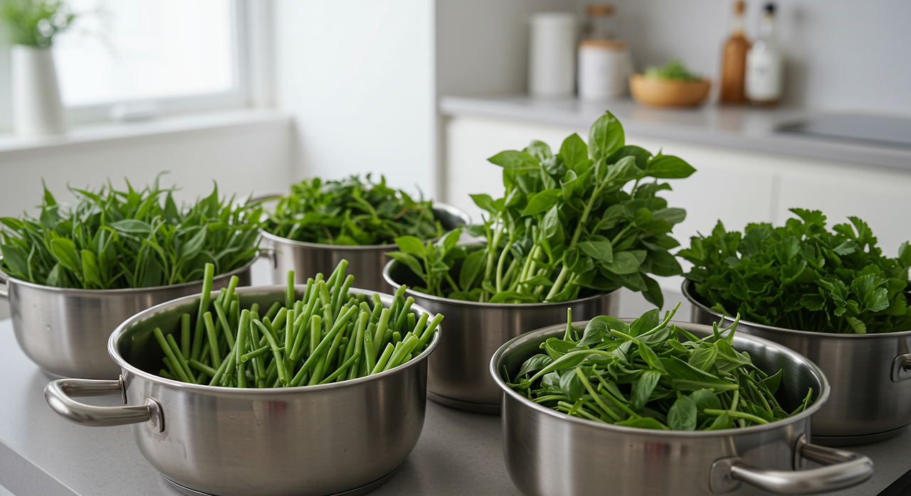 줄기와 잎 따로 데치기: 쫄깃함을 위한 시간 차이